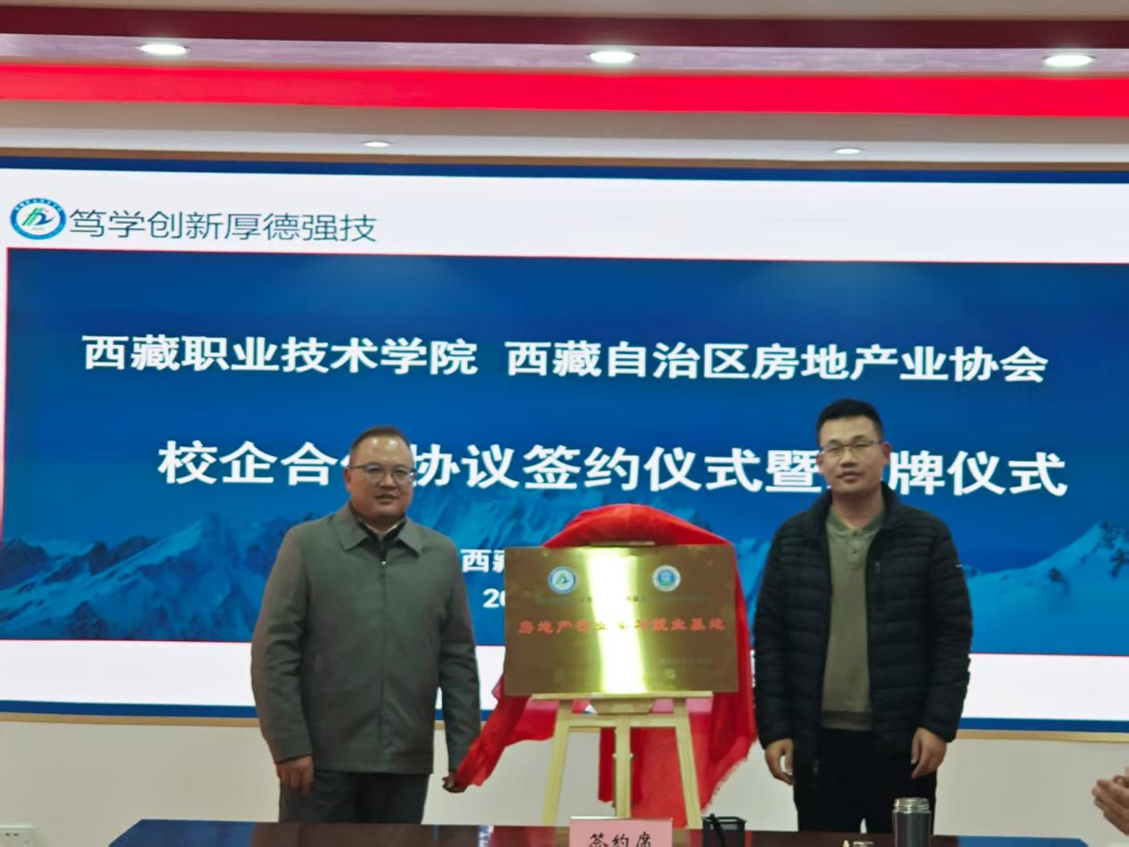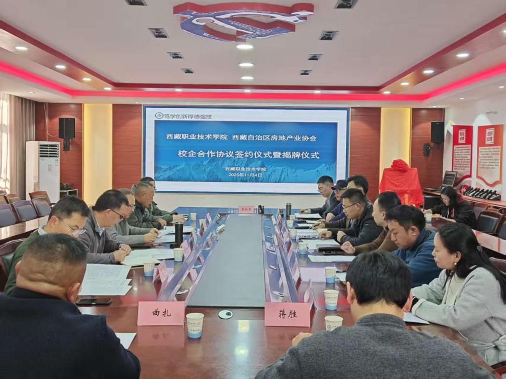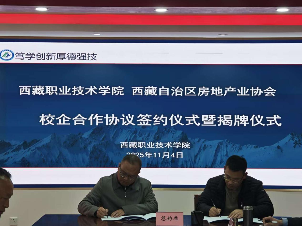 為拓(tuò)寬就業渠道,助力我校畢業生高質量充(chōng)分就業,2025年11月4日下午(wǔ),我校與西(xī)藏自治區房地產業(yè)協會校企合作框(kuàng)架協議簽約儀式暨揭牌儀(yí)式圓滿舉行。校黨委副書記、校長陳飛,西藏自(zì)治區房地產業協會常務副會長、秘書長盧冠昌出席會議,會議由招生就業指(zhǐ)導處處長群培次仁主持。