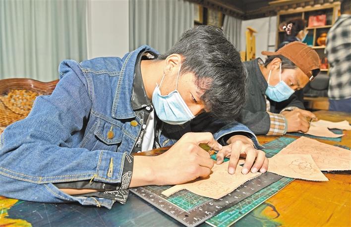 近年(nián)來,我區堅持(chí)以就業為導(dǎo)向,以服務為宗旨,不斷加強技能教育,培養技能型人(rén)才,使廣大農牧民群眾的子女和零就業家庭子女掌握一技之長,走上(shàng)就業致富之(zhī)路。圖為西藏職業技術學院的學(xué)生(shēng)在實操間縫製皮具。