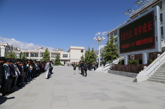 ------學校組織慰問“4、25”地(dì)震受災學生活動 4月25日,尼泊爾發生8.1級強烈地震,對我區日喀則市定日、定吉、聶(niè)拉木、吉隆等(děng)縣造(zào)成了巨大損失。為(wéi)了切實幫助我校(xiào)日喀則市相關受災學生家庭,2015年5月14日上...