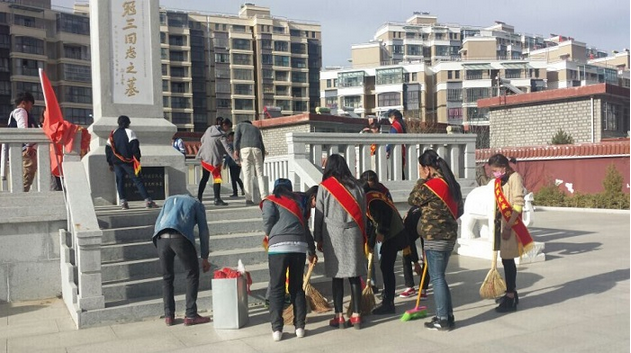 ——清掃譚冠三烈士陵園 在清明節來臨之際,為給前來譚冠三陵園祭奠的人們營造一個優美整潔的瞻仰、祭祀環境,3月(yuè)30日下午由(yóu)學生處(chù)副處長帶(dài)隊、院學生會(huì)全(quán)體成員到校園內的譚冠三烈(liè)士陵園進行“傳承雷鋒...