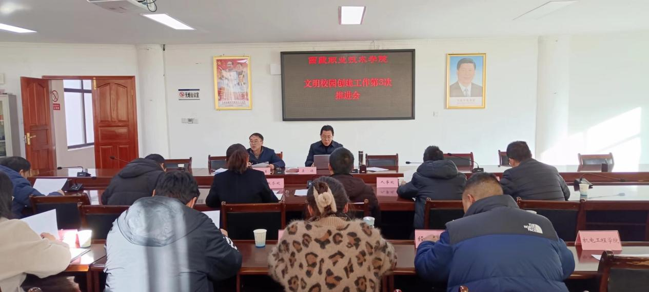 2023年11月27日下午,西藏職業技術學院召開文明校園創建工作第三次推進會。學院黨委副書記、院(yuàn)長索旺出席會議,各(gè)職能處室、二級學院(yuàn)負責同誌參加會議。會議由院黨委委員、副院長王勇主(zhǔ)持。會上各職(zhí)能處室負責同...