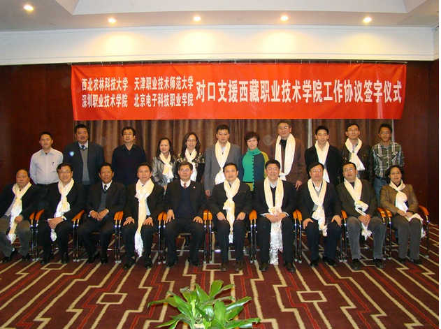2011年12月6日,對口(kǒu)支援西藏職業技術單位簽字(zì)儀式在北京西藏大廈舉行。參加儀式的有教育部高教司張(zhāng)大良司長、天津市教委張向陽(yáng)副巡視(shì)員、天津(jīn)職業技術師範(fàn)大(dà)學副校長孫奇涵、北京電子科技職業學院院長王海(hǎi)平、北(běi)...