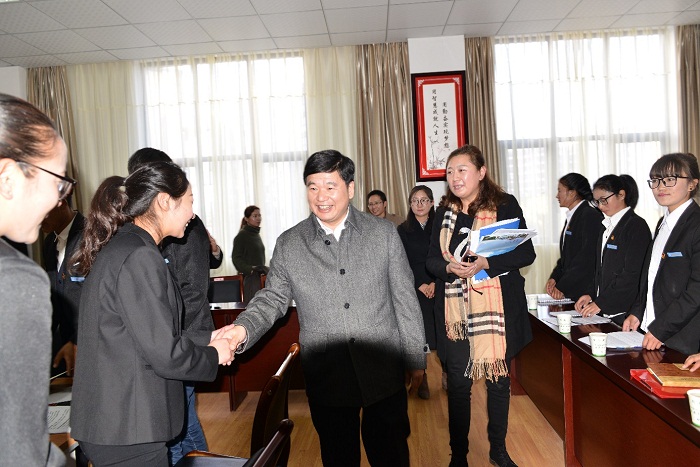 2017年11月21日下午,自治區副主席石謀(móu)軍蒞(lì)臨西藏職業技術學院與師生暢談(tán)學習貫徹黨的十九大(dà)精神(shén)。自治區政府副秘書長旦增倫珠,自治區(qū)教工委副書記、教育廳廳長杜建功,區政府(fǔ)辦公廳、區教育廳有關部門負責同誌,西藏職業(yè)技術學院領導陪同。
