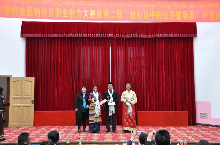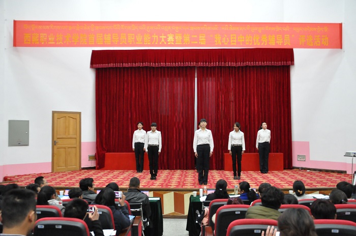 3月27日,西藏職業技(jì)術學院(yuàn)首屆輔導員職業能力大賽暨第二屆“我心目中的優秀輔導員”評選活動最後三個項目比賽在西校區學術報告廳順利結束,至此(cǐ)各項活動圓滿落幕。教(jiāo)育工(gōng)委高校團(tuán)工委書記隆瓊同(tóng)誌、院黨(dǎng)委委員、副(fù)院長索朗歐珠同誌、人事(shì)處處長(zhǎng)徐良同誌、公教部黨總支書記趙峰同誌和學工處處長德吉同誌出席並擔任評委,院黨委副書記、常務副院長葛維威同(tóng)誌(zhì)蒞臨閉幕會現場並做了(le)重要講話。學院各係負責人、專兼職輔導員以及學生代表共240餘人觀摩了比賽。