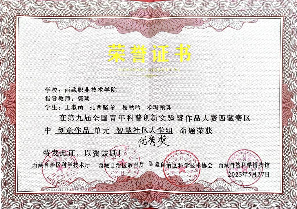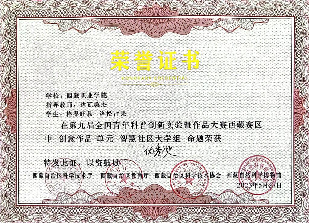 西藏賽區複賽以作品(pǐn)展示和陳述、現場(chǎng)答辯、現場實驗製作和競(jìng)技等(děng)形式開展比(bǐ)賽。複賽作品內容涉及(jí)太空車(chē)設計製作、智能魚(yú)缸、環(huán)境監測、智(zhì)能巡檢、消防保障等多個與國家發展(zhǎn)和人民生(shēng)活密切相關的領域。最終,我校(xiào)學生王(wáng)淑函(22級園藝技(jì)術1班)、紮西堅(jiān)參(22級(jí)園藝技術2班)、易秋吟(22級園藝技術1班)、米瑪頓珠(22級園藝技術1班)的創作作品“雲梯.維小保”(指導教師:郭琰(yǎn))和格桑旺秋(qiū)(21級新希(xī)望班)、洛鬆占果(guǒ)(21級(jí)新希(xī)望(wàng)班)的創作作品“AED便攜式除顫儀”(指導教師:達瓦桑傑)在創意作品單(dān)元智慧社區(qū)大學組比賽中榮獲優秀獎。