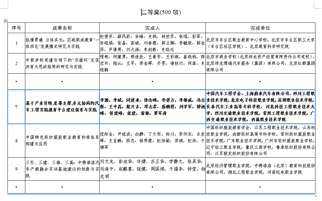 學院2個主持成果《基於“老西藏精神”的“大思政”育人體係的構建與實踐》《為民族傳技·為文化尋源:非遺傳承下“唐卡+專業”特色學徒製探索與實踐》榮獲職業教育國家級教學成果獎項二等獎(jiǎng),2個(gè)參與成果《“誌智資”三扶“校校企(qǐ)”協同:物流管理專業蘇藏(cáng)跨區域育人模式創新與實踐》《基於產業引領,競賽(sài)支撐,多元協同的汽車工程實踐教育平台建(jiàn)設(shè)探(tàn)索與實踐》分別榮獲職業教育國家(jiā)級教學(xué)成果獎項一等(děng)獎和二等(děng)獎。這是我院在國家級教學成果獎中(zhōng)取(qǔ)得的曆史(shǐ)性新突破,是(shì)學院“雙高計(jì)劃”建設的重要標誌性成果,也是申報本科層次職業院校的重要條(tiáo)件。