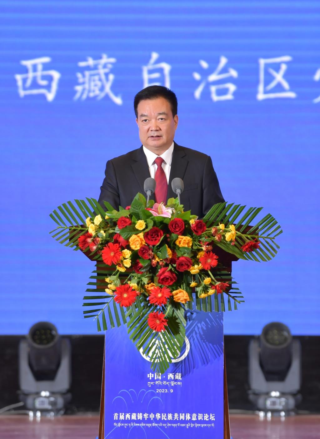 9月19日,西藏鑄牢中華(huá)民族共同體意識論壇在拉薩開幕。自(zì)治區(qū)黨委書記王君正出席並作主旨演講。記者 旦增西旦 攝
