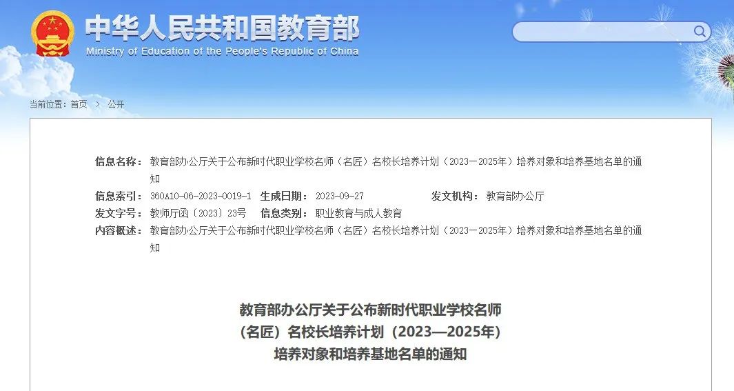 近日,教育部辦(bàn)公廳下發《關於公布新時代職業學校名師(名匠)名校長培(péi)養計劃(2023-2025年)培養對象和培養基地名(míng)單(dān)的通知》(教師廳函〔2023〕23號)。教育部確定了高等職業院校名師(名(míng)匠)培養對象(xiàng)210人、中等職業學校名校長培養對象50人。我校教師劉海聰成功入選名師培養對象(xiàng),西藏僅1人入選(xuǎn),這是學校“雙高”建設取得(dé)的又一標誌性(xìng)成果。