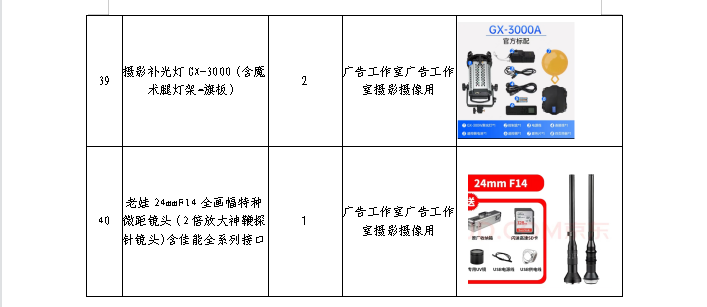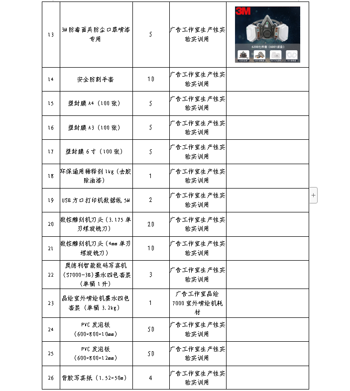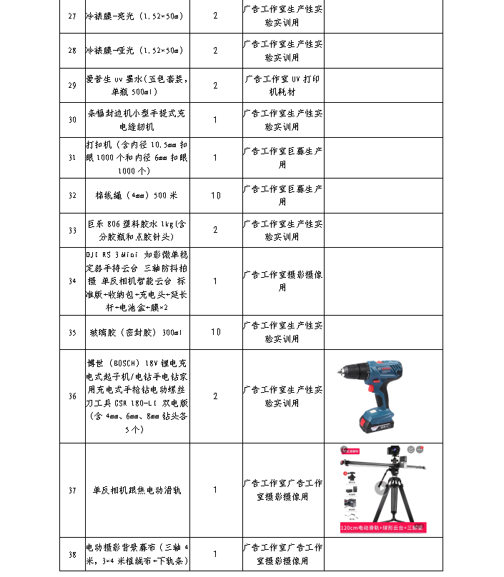 廣告工(gōng)作室(shì)購買設備配套用品參數(見附件1)