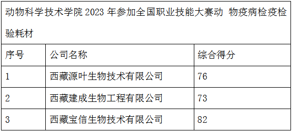 2023年5月13日12時,動物(wù)科學技術(shù)學院2023年參(cān)加全國職業技能大賽動物疫病檢疫檢驗賽項所需耗材(cái)在動科學院三樓會議室開標,經評標委員會(huì)評定,現將招標結果公示如下: