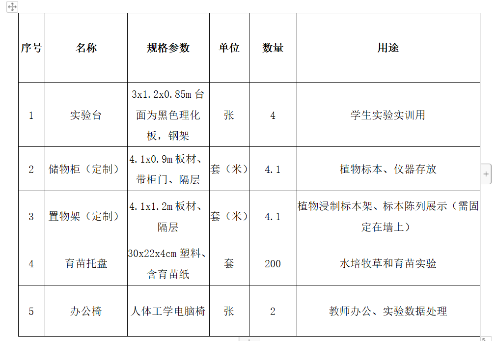 一、動科學院草地農業生態係統綜合實訓室物品采購清單