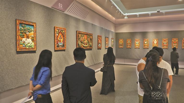 2024年,市民(mín)參觀“雪(xuě)域彩韻——藏式(shì)木雕彩繪精粹展”暨西藏職業技術學院50周年校慶教學成果展。