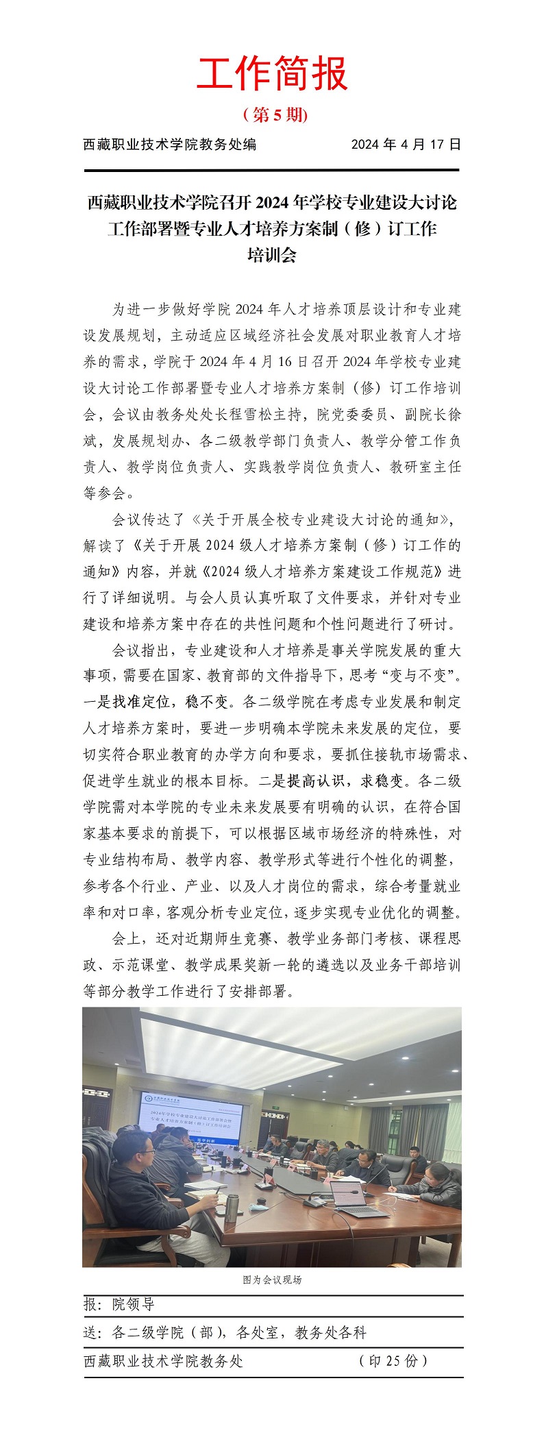 西藏職業技術學院召(zhào)開2024年學校專業建設大討論工作部署暨(jì)專業人才培養方案製(修)訂工作培訓會