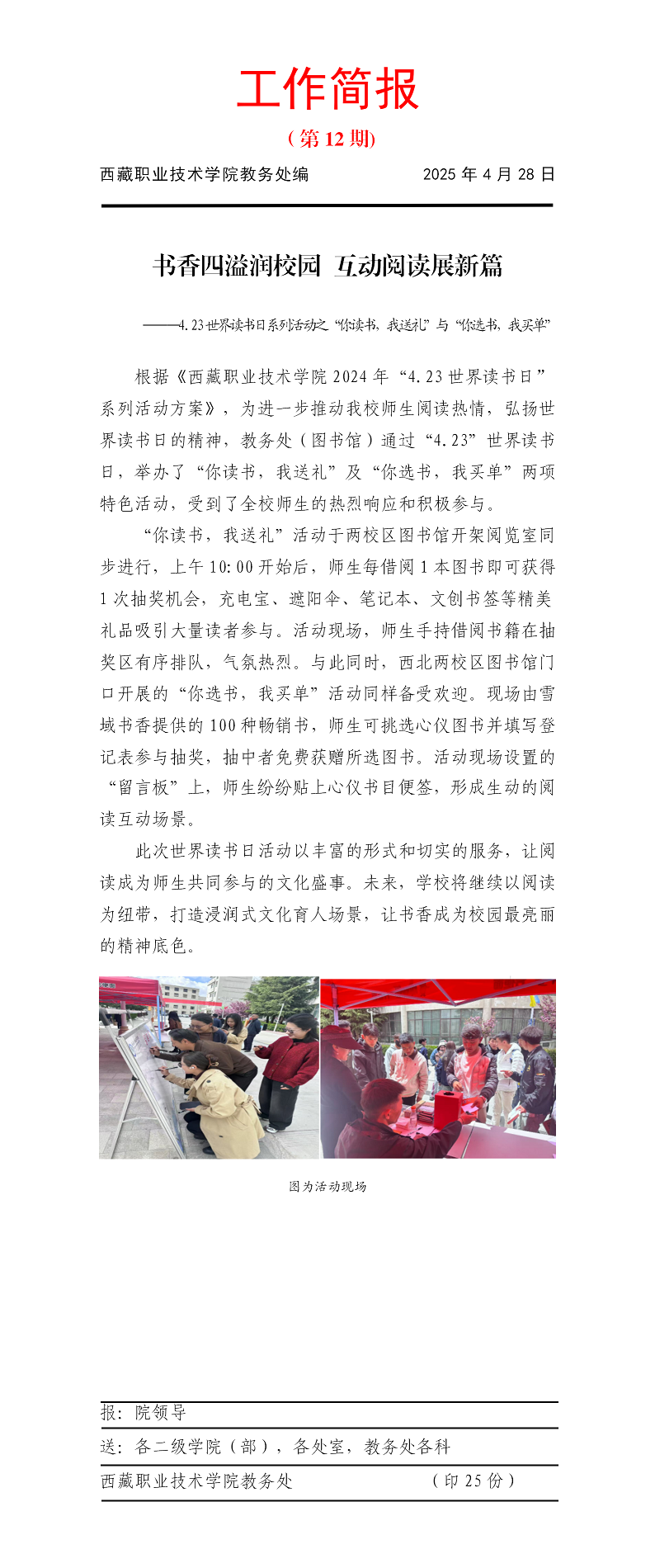 上一條:書香墨韻滿職院 “讀(dú)”領風騷正當(dāng)時 --4.23世界讀(dú)書日係列活動之表彰大會 下(xià)一條:以評促(cù)建(jiàn) 以評促改 推動教學管理精細化、質(zhì)量保證體係(xì)化 ——教務(wù)處啟動全校教學單位督導調(diào)研工作