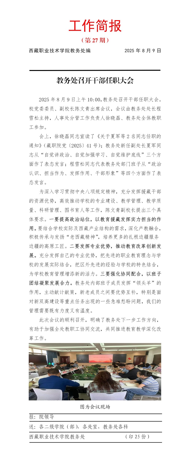 上一條(tiáo):凝心聚(jù)力 再啟征程 --教務(wù)處召開2025-2026學年第一學期(qī)期初收心暨工作部署會 下一條:凝心聚力謀發展 深耕(gēng)教材譜(pǔ)新篇 ——西藏職業技術學院召開第八次教材工(gōng)作會議