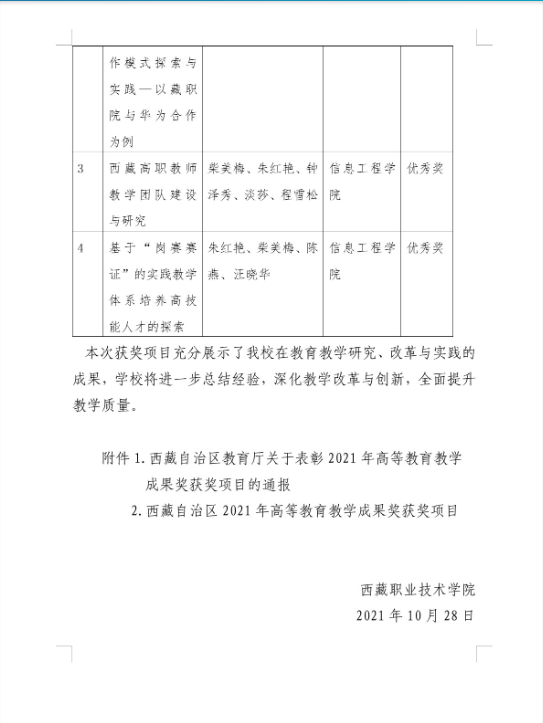 上一條(tiáo):關於公布2022年校級教學能力比賽結果的通知 下一條:西藏職業技術學院關於批準2020年 院級教學成果獎獲獎項目的決定