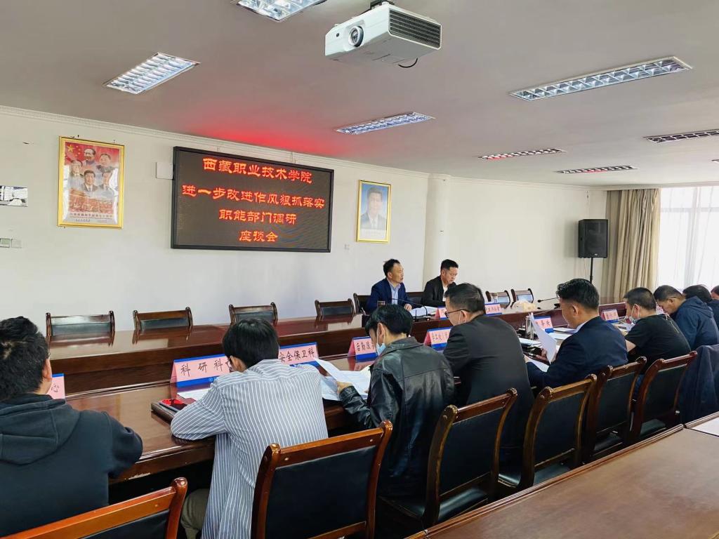 6月1日上午,西(xī)藏職業技術學院黨委進一(yī)步改進作風狠抓落實工作領導小組組(zǔ)織召開進一步改進作(zuò)風狠抓落實職能部門調研座談會,會議(yì)由校黨委委員、副院長鄧政洲主持,各(gè)處(室)、各直屬科室主要負責同誌參加了(le)會議(yì)。