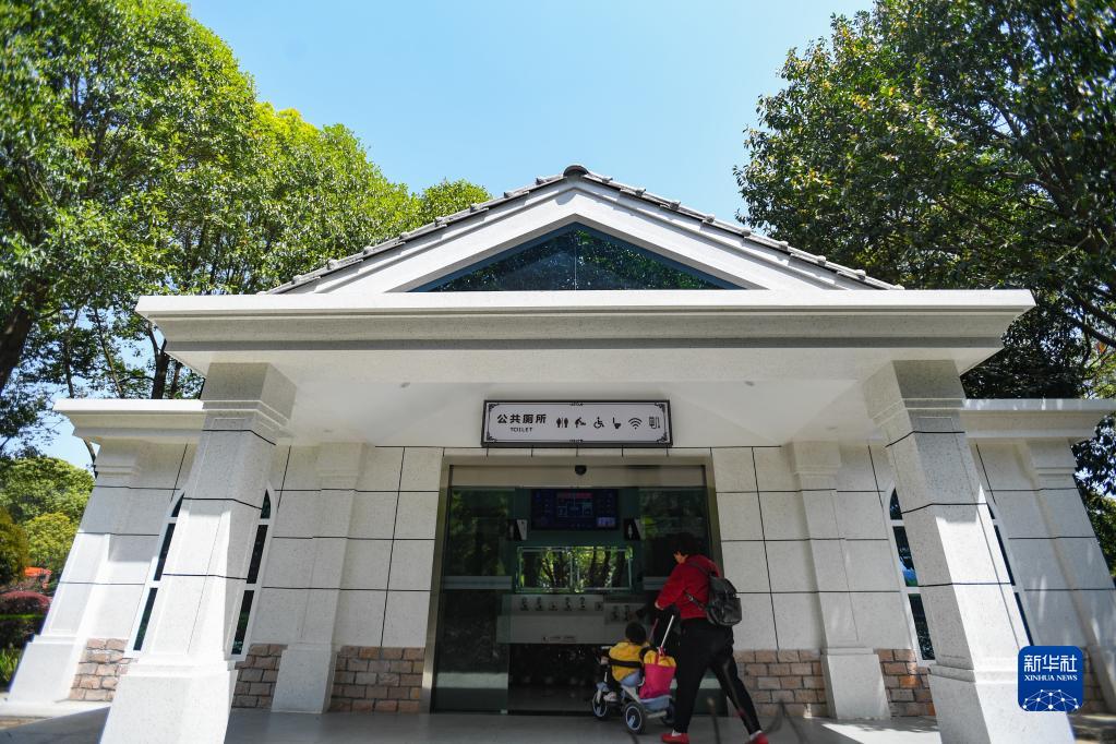 市民帶著小朋友進入位於湖南長(zhǎng)沙(shā)縣(xiàn)星沙中心廣(guǎng)場的智慧廁所(2021年3月(yuè)24日攝)。新華社記者 陳澤國 攝