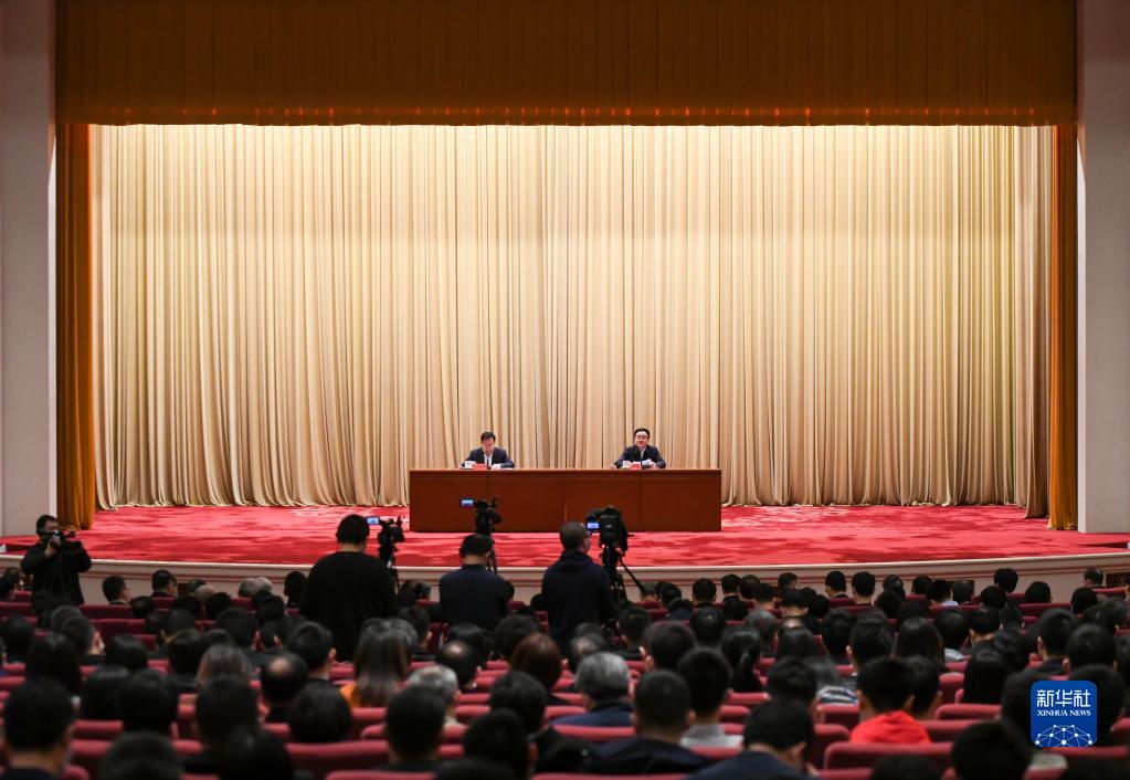 2021年3月16日,黨史學習教育中央宣(xuān)講團首場報告會在北京舉(jǔ)行。這是(shì)中央宣講團(tuán)成員、中央黨史和文獻研究院院長曲青(qīng)山(右)在報告會上作宣講報(bào)告。新華社(shè)記者 陳曄華 攝