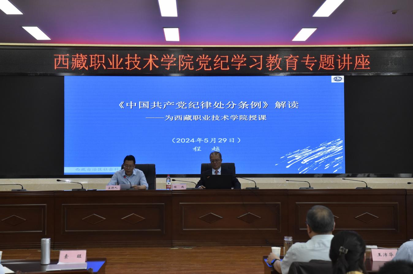 為深入學習《中國共產黨紀律處分(fèn)條(tiáo)例》,提高黨員幹部的黨(dǎng)紀意識,5月28日下午,西藏職業技術學院特邀西藏自治區社會科學院一級巡視員、中國藏學研究中心現實(shí)問題特約研究員、中共西藏自治區委(wěi)員會黨校黨史黨建專業兼職教師、西(xī)藏民族大學客座教授程越同誌作專題講座。全(quán)院(yuàn)無課(kè)教師、黨員幹部(bù)共計200餘(yú)人參(cān)加,會議由院(yuàn)黨(dǎng)委書記、副院長索旺同誌(zhì)主持。