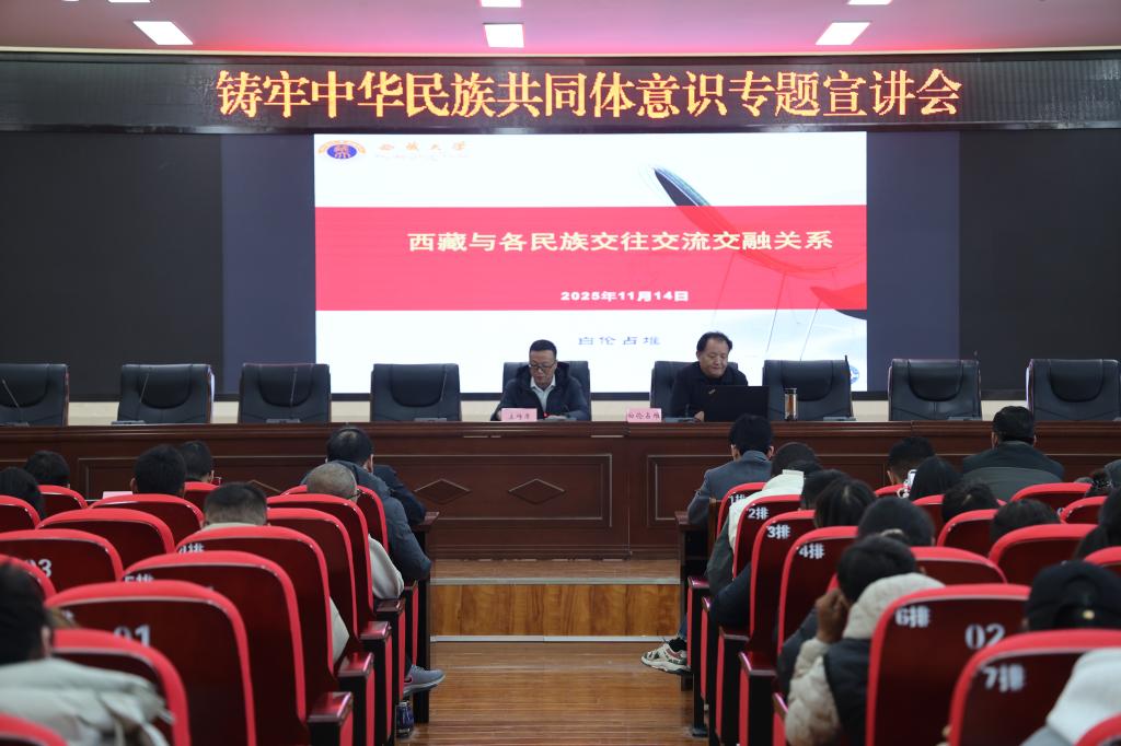 會上,白倫占堆教授以《西藏與各民族交往交流交融關係》為(wéi)題,從中華民族(zú)共同體的深刻內涵闡釋切入,立足“中華民族多元一體格局”理論,係統梳理了(le)從唐蕃關係到元朝的西(xī)藏地方納入中央政權管轄、曆朝曆(lì)代中央政府對西藏的治(zhì)理(lǐ)脈絡,清(qīng)晰呈現了西藏作為祖國不可(kě)分割一(yī)部分的曆史必然。同時,他通過回顧新中國成立後西藏民主改革曆程與社會主義建設(shè)成就,有力印證了“沒有共產黨就沒有(yǒu)社會主義新西藏”的深刻真理(lǐ),進一步強化了師生的“五個認(rèn)同”與“感黨恩、聽黨話、跟黨走”的政(zhèng)治自覺。整場宣講兼具曆史厚度與(yǔ)現實溫度(dù),為師生上了一堂生動深刻的曆史課、思政課。