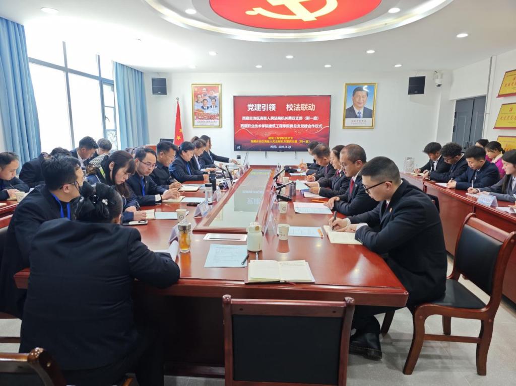 為深入貫徹習近平法治思(sī)想,落實依法治校理念,深化校法合作,西藏職(zhí)業技術學(xué)院建築(zhù)工程學院黨總支與西藏自治區(qū)高級人民法院機關(guān)第四支部(刑一庭)於(yú)2025年3月25日下午15:30舉行黨(dǎng)建合作啟動儀式。會議由建築(zhù)工(gōng)程學院黨總支書記(jì)德吉主持,西藏自治區(qū)高級人民法院機關第四支部(刑一庭)支(zhī)部書記、庭長(zhǎng)旦珍等法(fǎ)院幹警,建築工程學院黨(dǎng)總支師生黨員代表共同參加了啟動儀式,校黨委(wěi)書記索旺出席並講話(huà)。